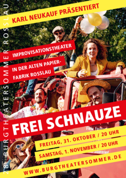 Ein wunderschöner Sommer liegt hinter uns, mit vielen Aufführungen und Workshops auf der Wasserburg Roßlau. Diesmal dauert es nicht lange, bis es weitergeht: Das Improvisationstheater “Frei Schnauze” wird bald wieder in Roßlau zu sehen sein. Ende Oktober spielt das Ensemble rund um Karl Neukauf in der Alten Papierfabrik, auf dem ehemaligen Areal des WTZ in der Karl-Liebknecht-Straße.